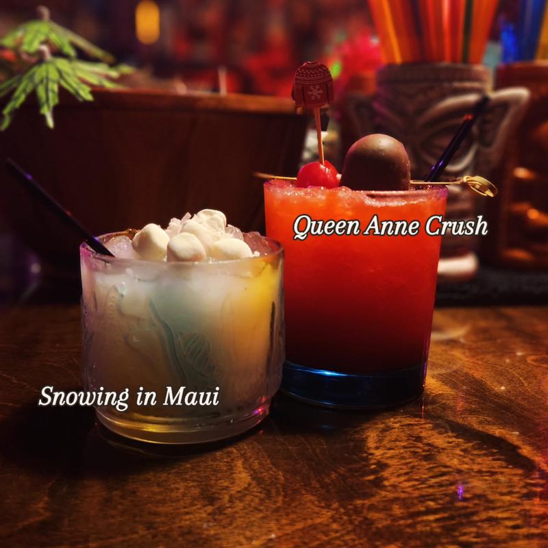 Ocean Hawaiian Vodka, Pineapple Juice, Coconut Syrup, Cinnamon Syrup, Served on the Rocks with Marshmallows and Coconut Flakes